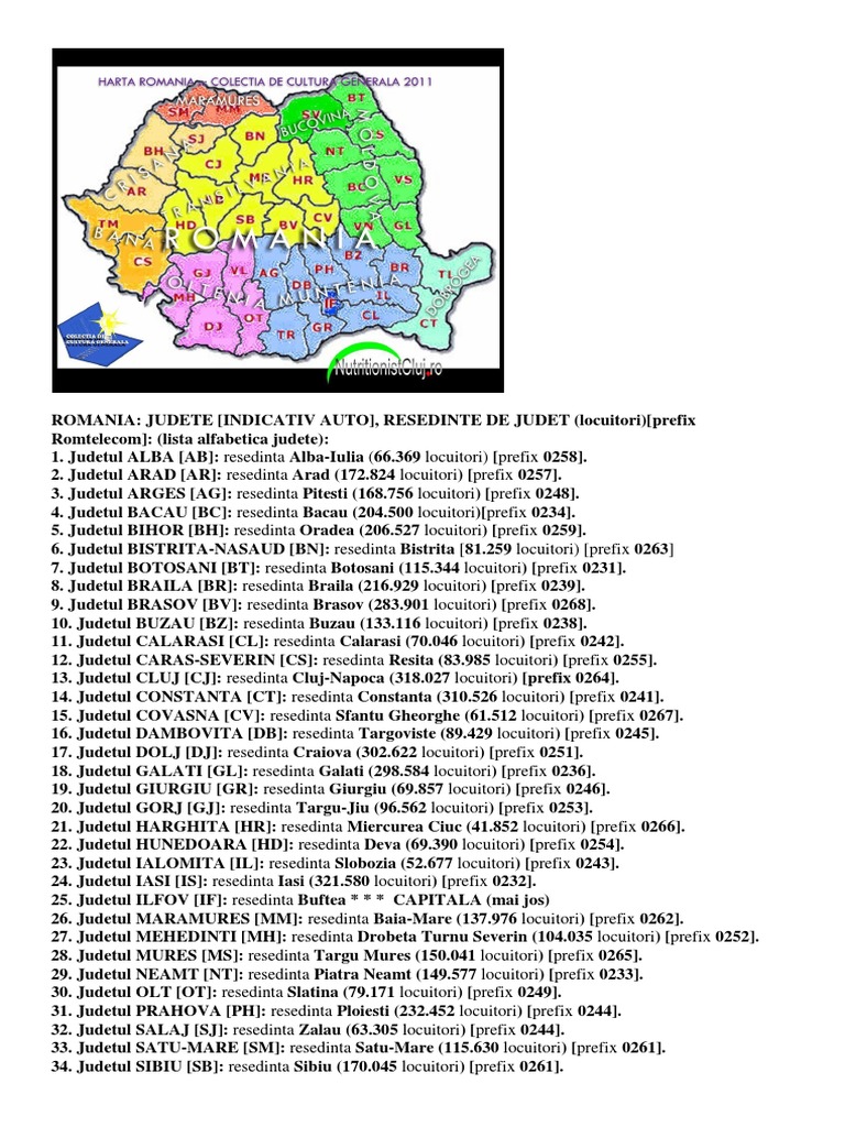 vizitati articolul complet aici : https://www.teoalida.ro/lista-judete/ In romania exista momentan 41 judete si municipiul bucuresti. Geografilia hartă bac romania județe și reședințe de județ. Județe), along with the municipality of bucharest, constitute the official administrative divisions of romania.